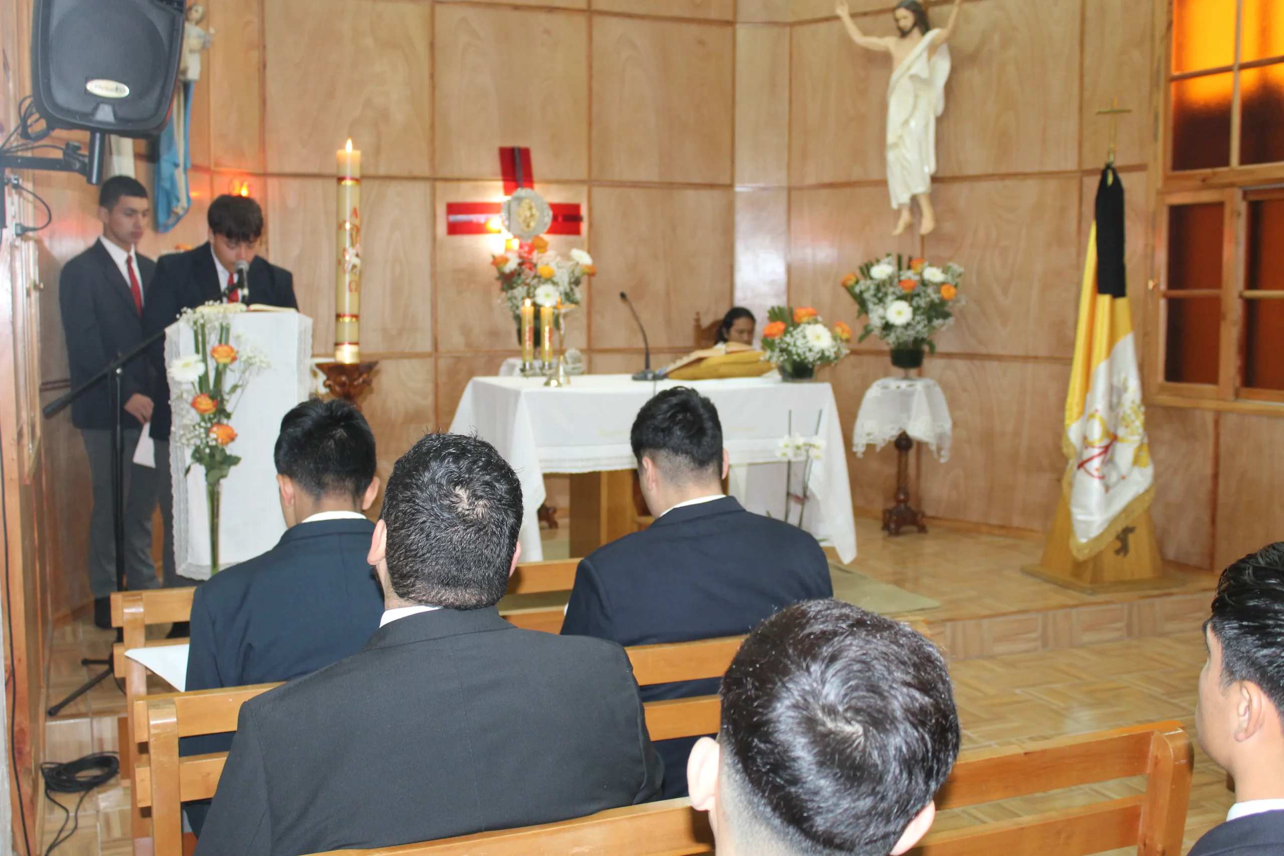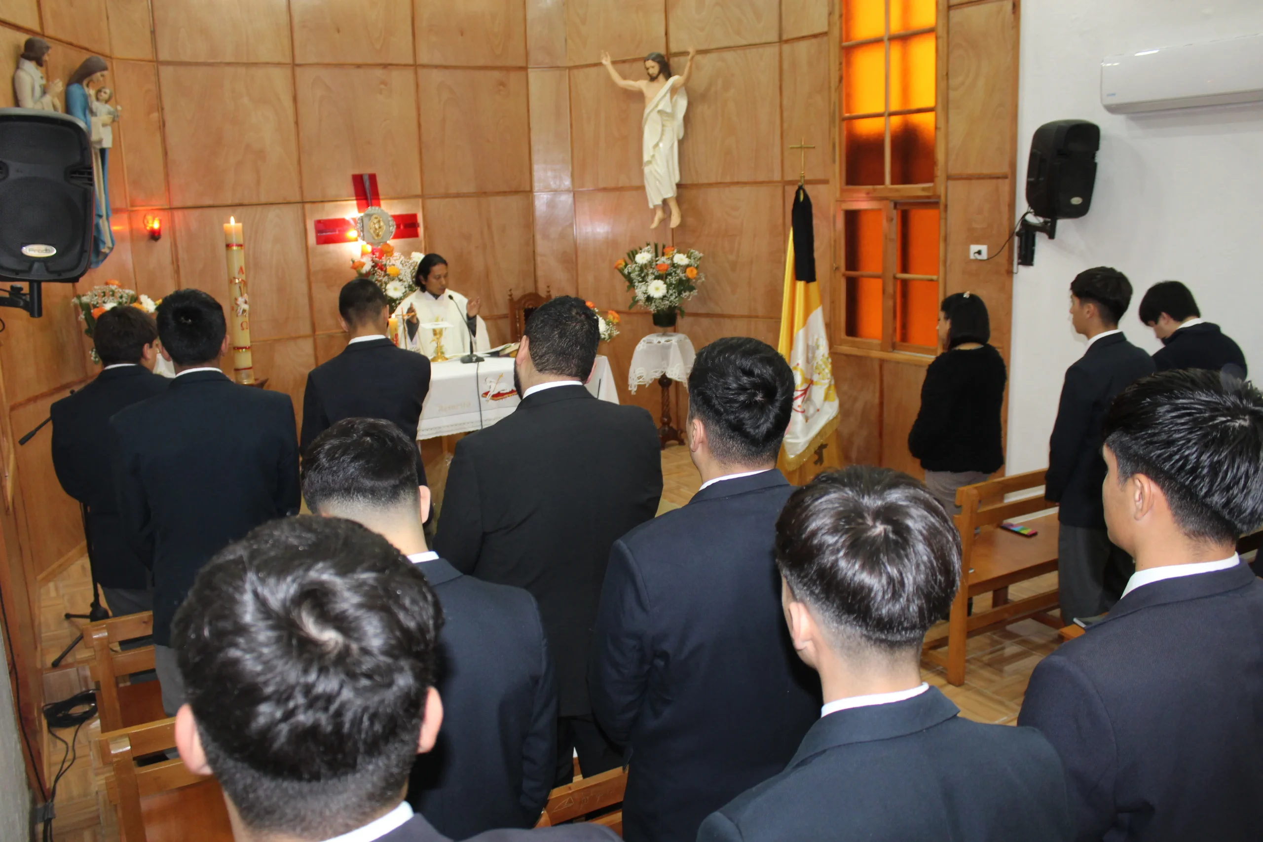 Durante la jornada de esta mañana el Tercero Medio B, Técnico profesional en electricidad comparte momento de  oración mediante la Eucaristía, poniendo en intención el eterno descanso del Papa Francisco y las necesidades propias.