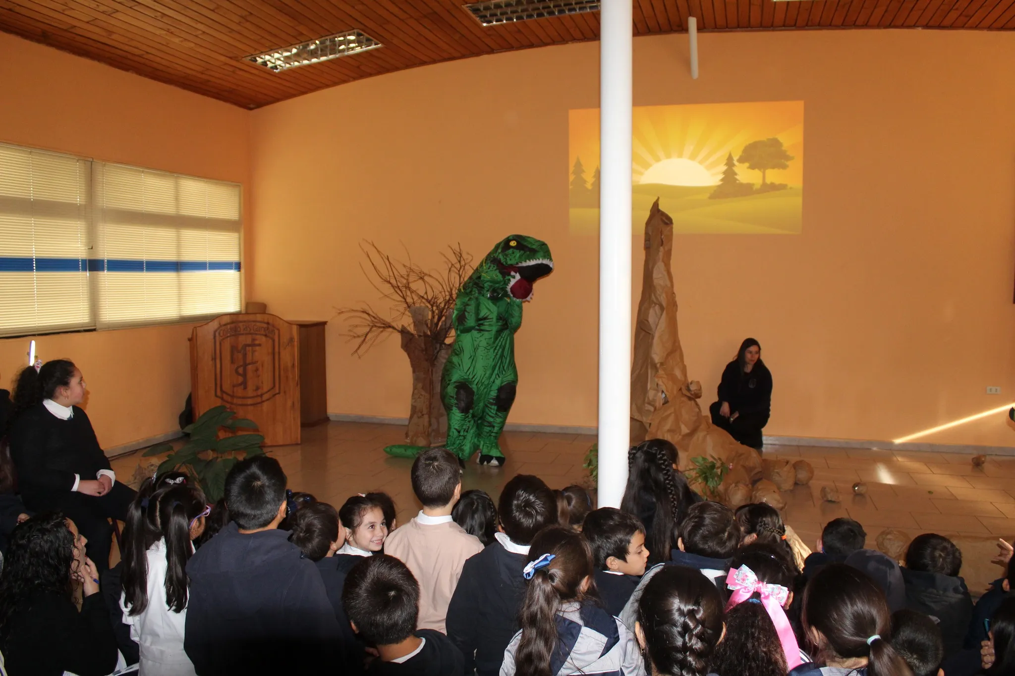 Además, se realizó el cuentacuentos “Los dos dinosaurios”; amiguitos que no lograban resolver sus puntos de vista, pero ayudados por este equipo de profesionales, hubo solución. Este cuento dramatizado estuvo dirigido hacia los y las estudiantes más pequeños de nuestra Comunidad, siendo los cursos desde Escuela de Lenguaje hasta 3° básico, nuestros espectadores.